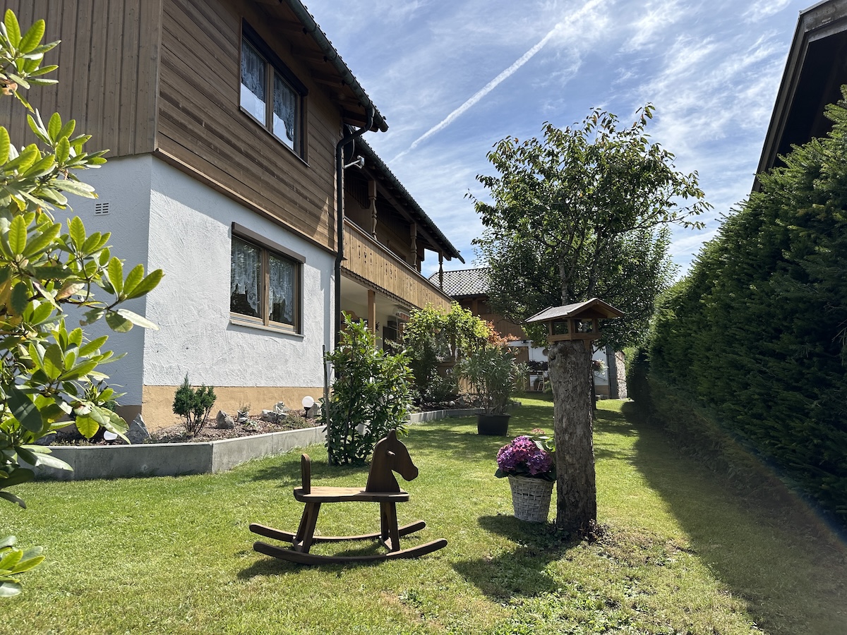 einer Wohnküche, einem Bad und einer Terrasse. Die Wohnung verfügt über einen direkten Zugang zum Garten.